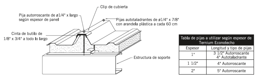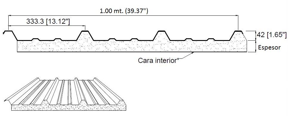Es una opción económica de panel para cubierta, tipo galvatecho, fabricado con la cara exterior en acero, núcleo de poliuretano rígido y la cara interior en vinil (vista); ambas caras van adheridas químicamente mediante el propio núcleo. Su fijación es expuesta y es de muy fácil instalación